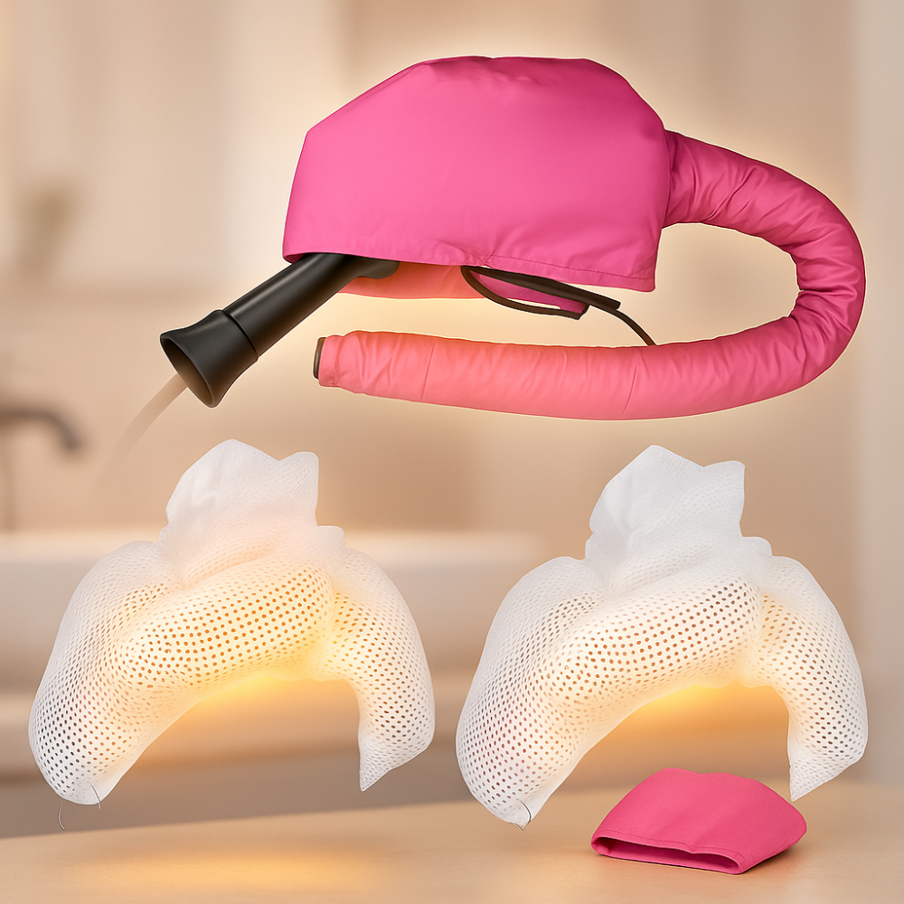 Verwandeln Sie Ihre Haarpflege-Routine mit dieser tragbaren Haartrockner Kappe. Sie ist leicht, praktisch und ideal für Lockenpflege, schonendes Trocknen und schnelles Styling. Das atmungsaktive Netzgewebe schützt die Kopfhaut, verteilt die Wärme gleichmäßig und sorgt für gesünderes, glänzendes Haar – ganz ohne stundenlanges Föhnen.