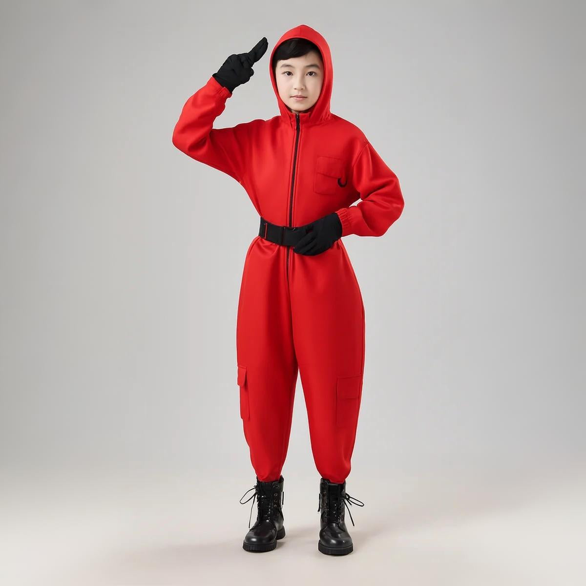 Halloween Kostüme für Kinder mit Kapuzen-Overall und Maske sind ideal, um bei Partys, Schulveranstaltungen oder Cosplay-Treffen aufzufallen. Dieses Komplettset enthält einen roten Overall mit langen Ärmeln, einen Gürtel, Handschuhe und eine detaillierte Maske. Hergestellt aus strapazierfähigem Polyester, ist das Kostüm bequem zu tragen und behält gleichzeitig seinen authentischen Look.