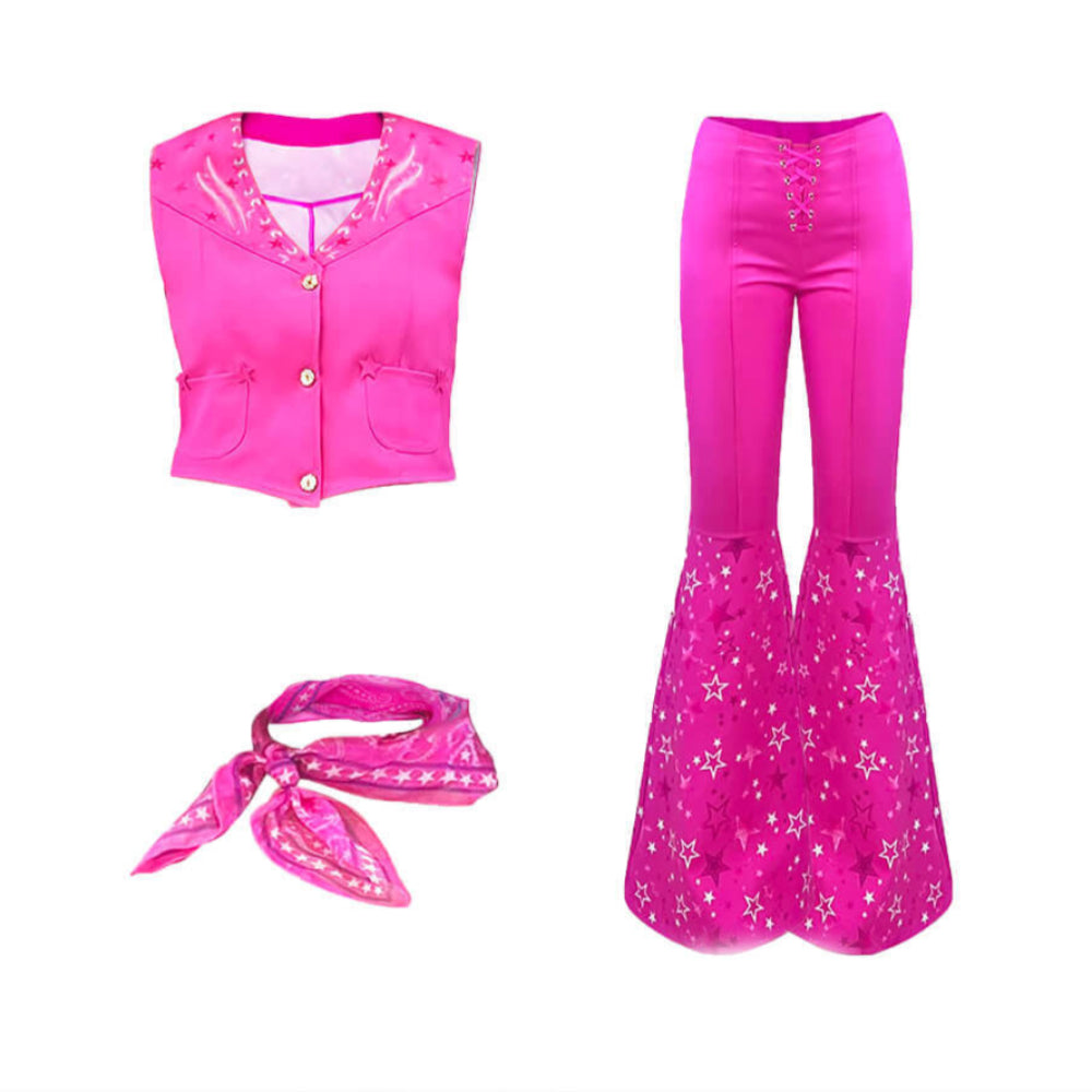 - Stylisches Design: Das leuchtend pinke Outfit mit klassischem V-Ausschnitt und ausgestellten Hosen sorgt für einen auffälligen Look.
