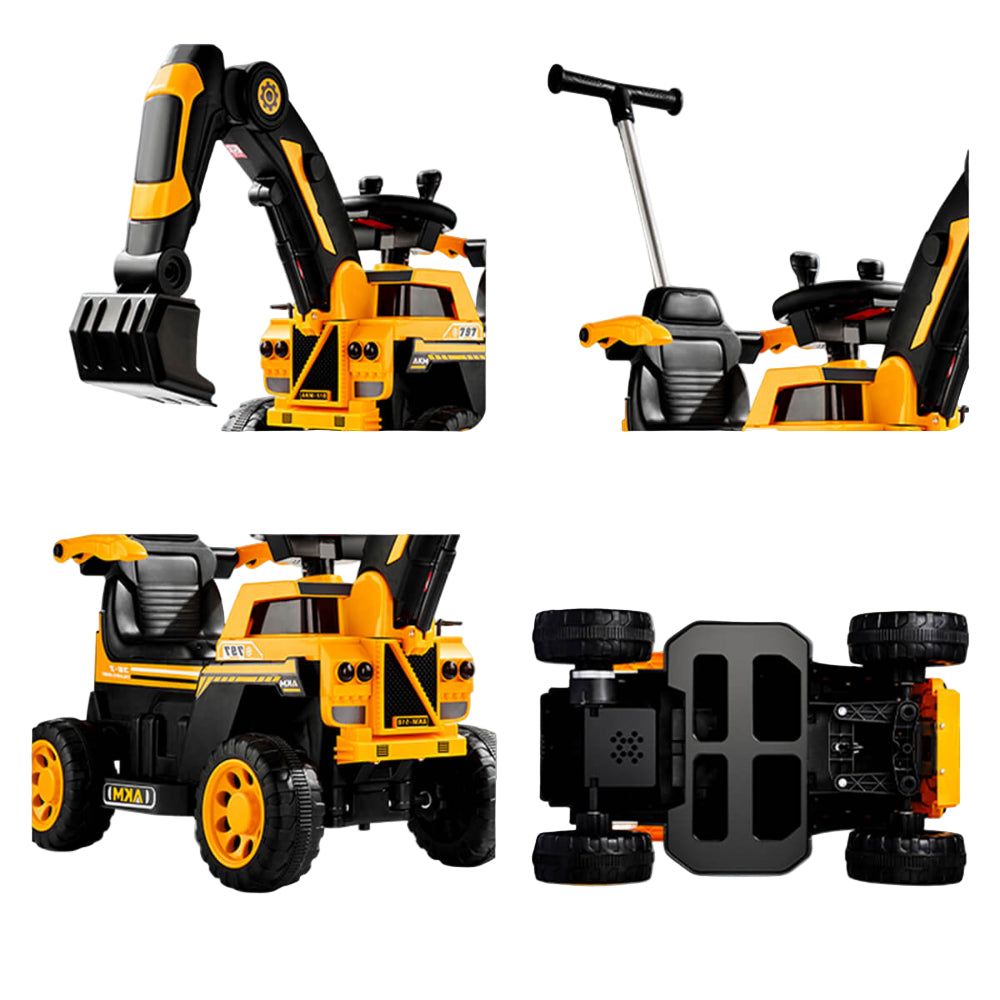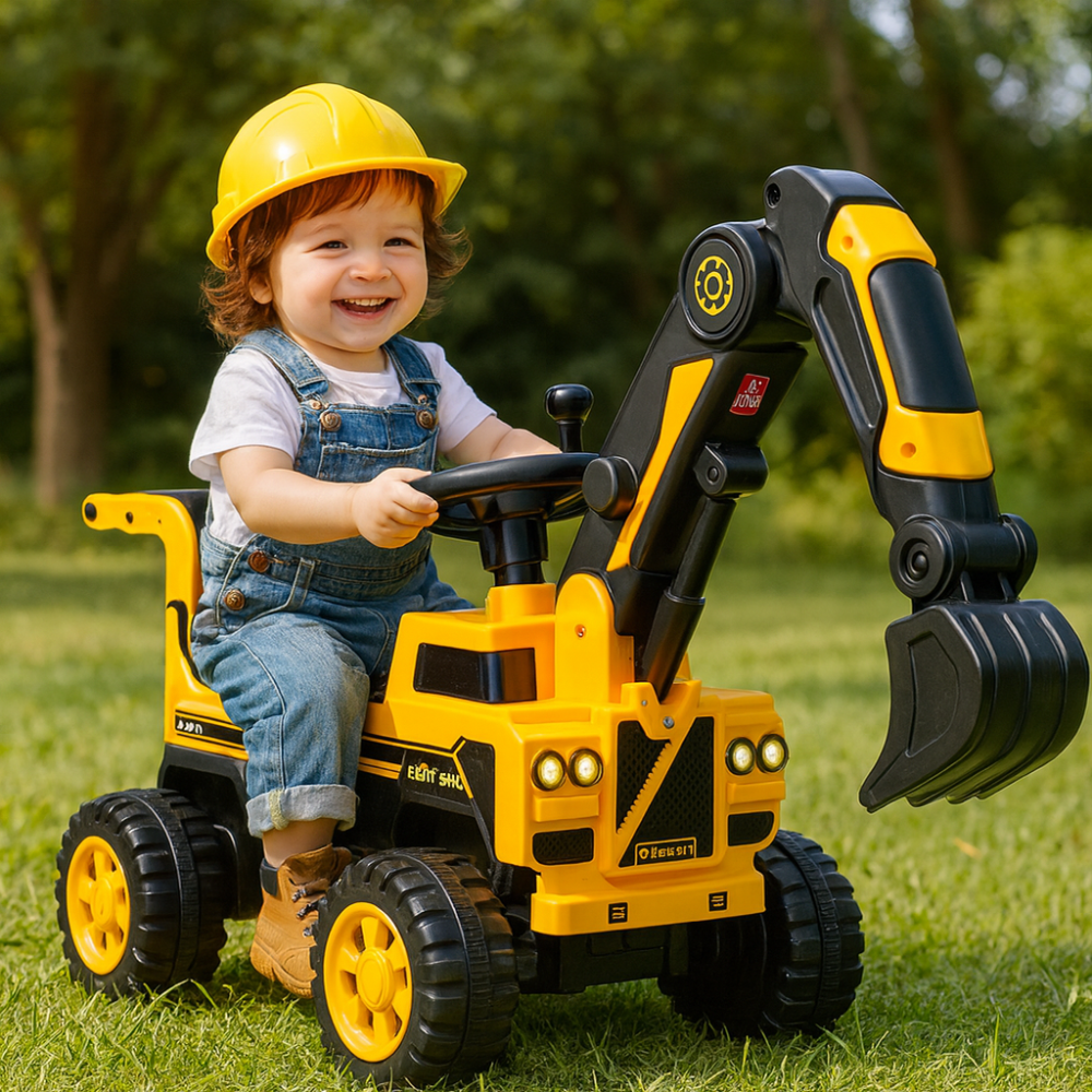 Dieser vielseitige Kinder Elektrobagger ist das perfekte Spielzeug für kleine Bauarbeiter! Der 6V Sitzbagger mit elektrischer Schaufel bietet realistisches Baggervergnügen und wächst mit Ihrem Kind mit. Mit Licht, Musik und abnehmbarem Schiebergriff kombiniert dieser elektrische Bagger Spaß mit Sicherheit. Geeignet für Kinder von 10 Monaten bis 8 Jahren – vom Buggy bis zum vollwertigen Fahrzeug!