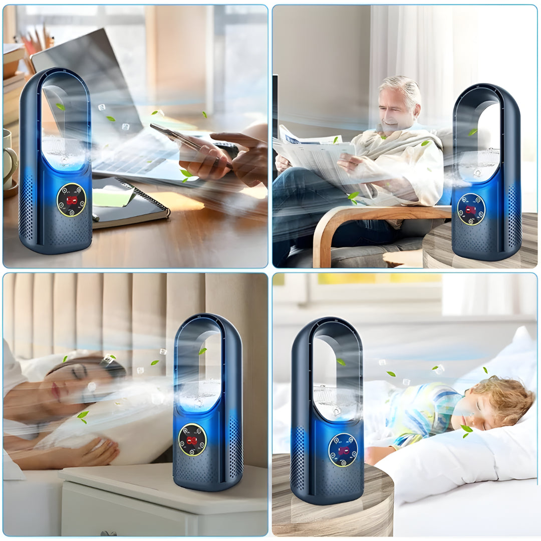 Dieser blattlose Mini-Luftkühler sorgt für angenehm kühle Luft ohne störende Geräusche. Das kompakte, tragbare Design passt auf Schreibtisch, Nachttisch oder Küchenarbeitsplatte und liefert flexible Abkühlung für Zuhause und Büro – ganz ohne feste Installation und mit energiesparendem Betrieb.