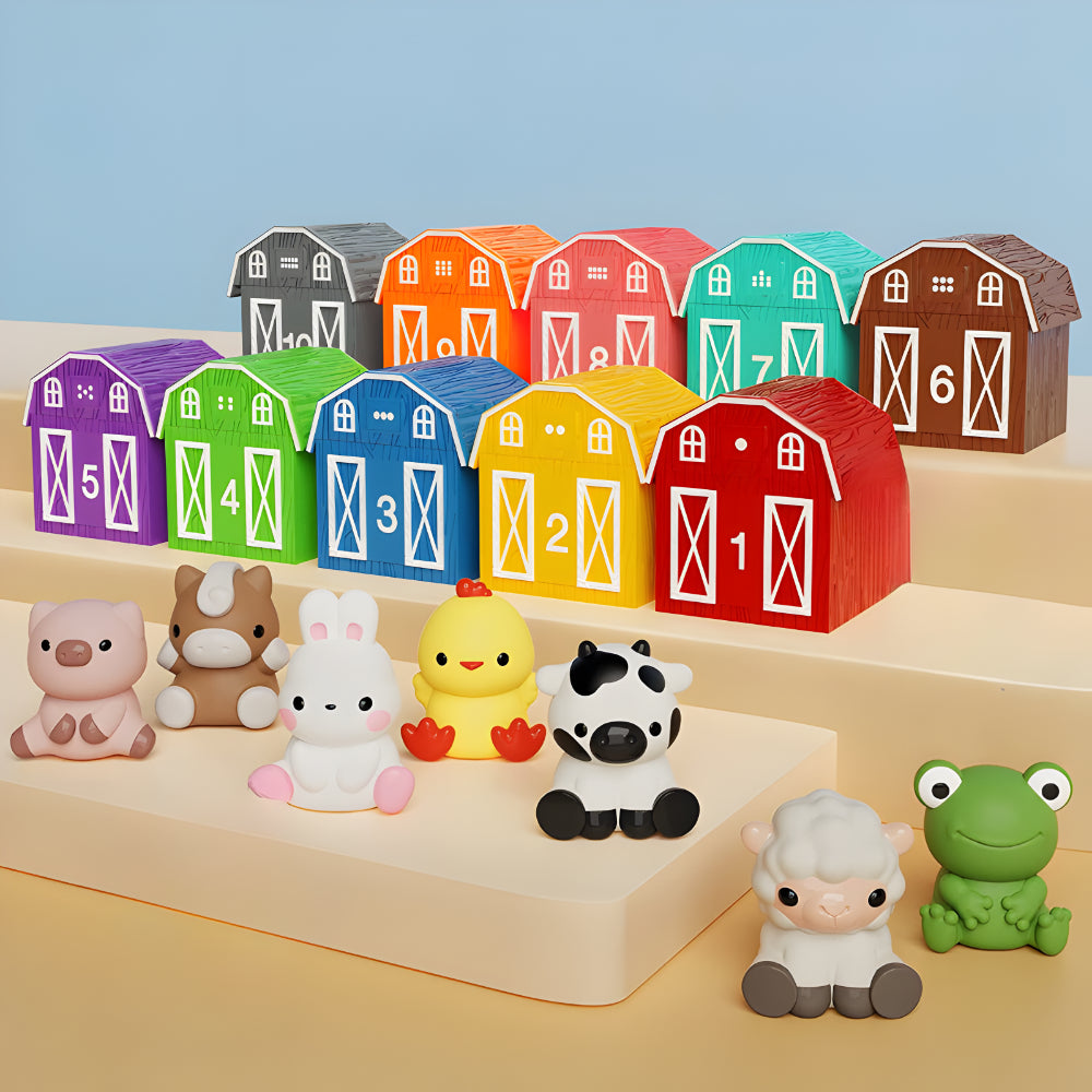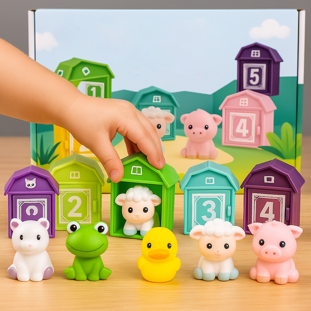 Dieses interaktive Montessori Lernspielzeug mit weichen Silikon-Tierfiguren macht frühes Lernen kinderleicht. Beim Zählen, Sortieren und Zuordnen trainieren Kleinkinder spielerisch Kognition, Feinmotorik und Farberkennung – ideal für die frühkindliche Bildung zu Hause oder im Kindergarten.