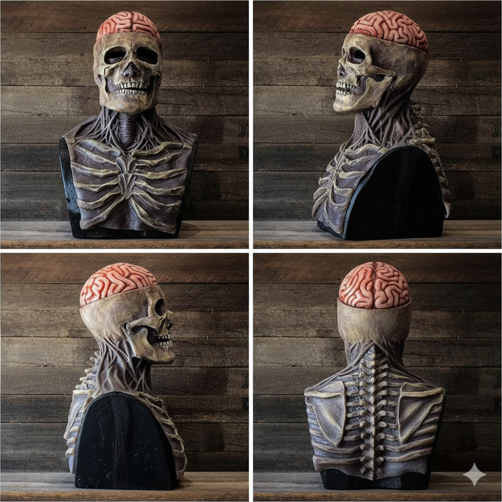 - Realistisches Design: Detaillierte Gehirn- und Knochenelemente für einen intensiven Gruselfaktor.