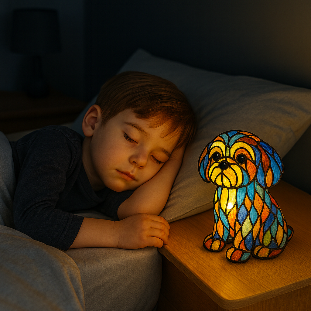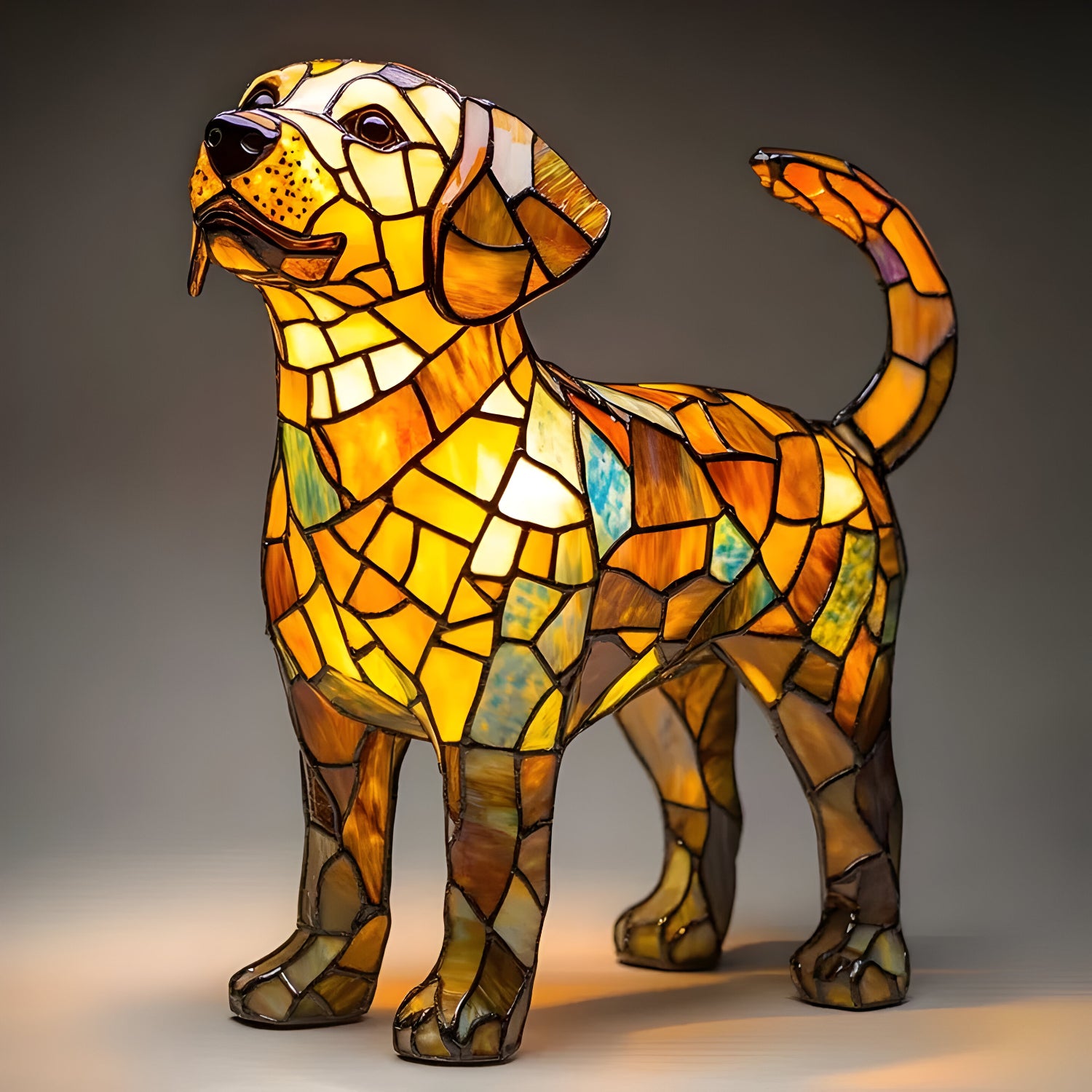 Tiffany Glas Hund Tischlampe Warmes Licht