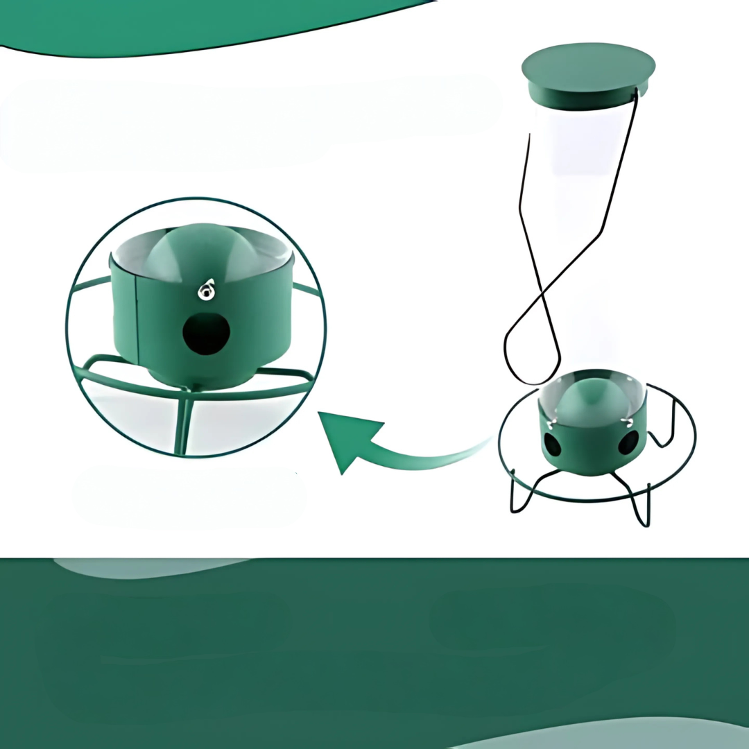 Dieser hochwertige Vogelfutterspender sorgt für eine sichere und saubere Fütterung in Ihrem Garten. Dank des cleveren Squirrel-proof Designs bleiben Ihre Samen geschützt, während Vögel wie Meisen, Finken oder Spatzen ungestört fressen können. Aus robustem Metall und Polycarbonat gefertigt, ist er besonders langlebig und wetterfest, ideal für den ganzjährigen Einsatz im Außenbereich.